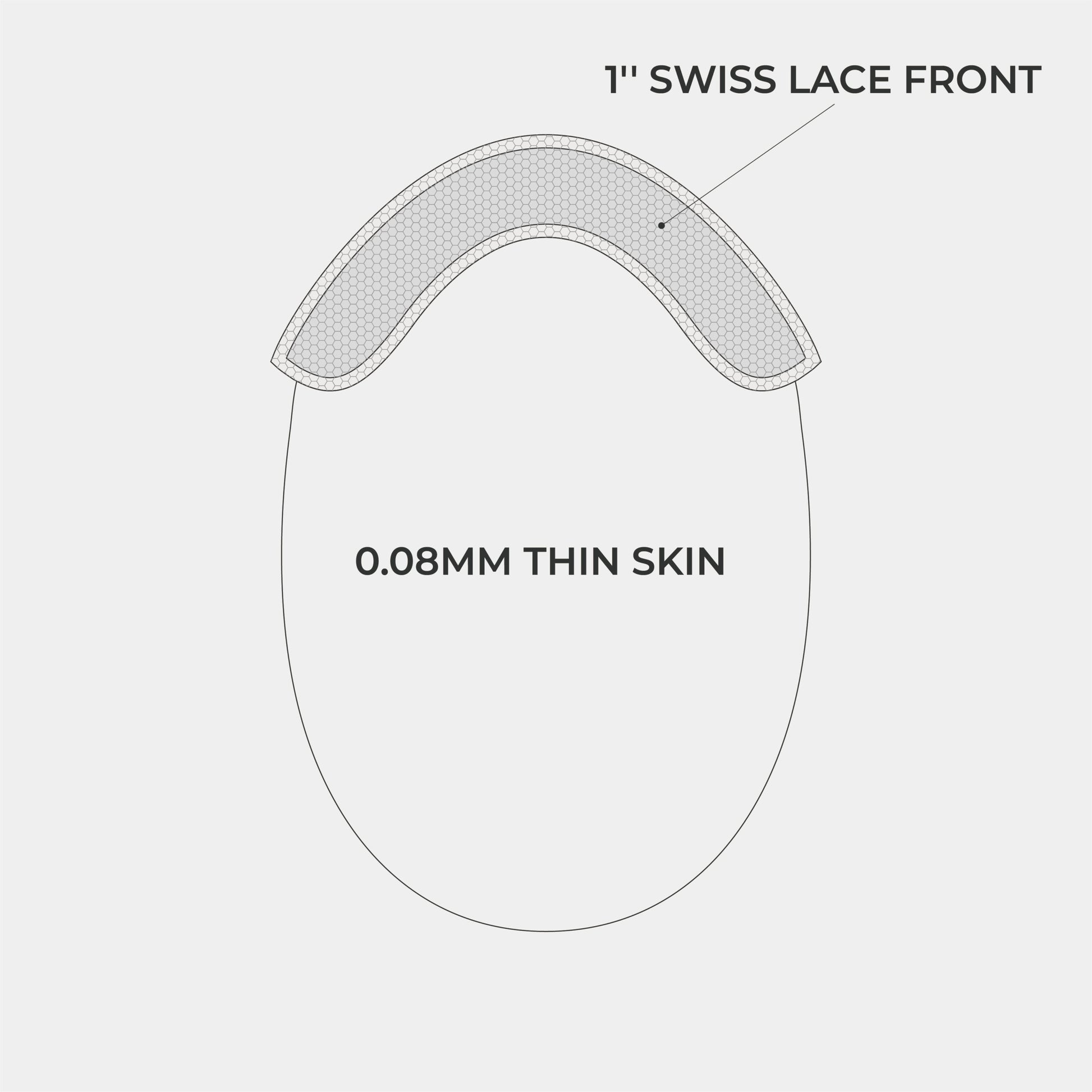 0.08mm knotted thin skin with 1" bleached Swiss lace front |