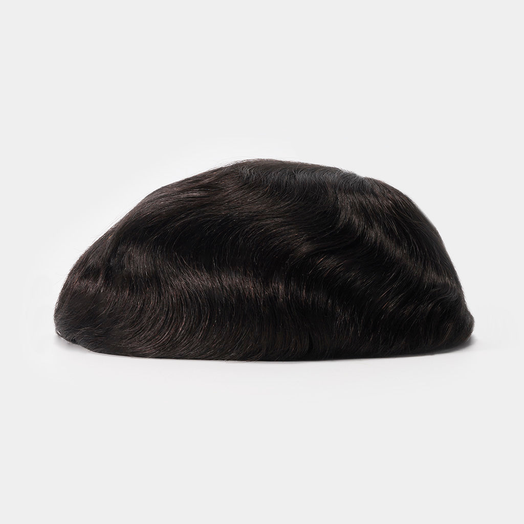The HS1E 0.12mm thin skin hair system is designed for clients seeking durability with a natural look. Built on a 0.12mm poly base, it offers twice the lifespan of traditional systems, lasting 3–6 months with proper care. Unlike standard thin skin bases, this innovative system features knotted human HS1E hair system technology, ensuring stronger ventilation and added security. The scallop hairline makes the hair base system natural and easily blendable with your own hair, making that impossible to spot. It's made with 100% human hair, so you can style it in any direction that gives you flexibility and freedom of use. The HS1E system is light to wear but still strong, offering comfort and confidence that lasts.